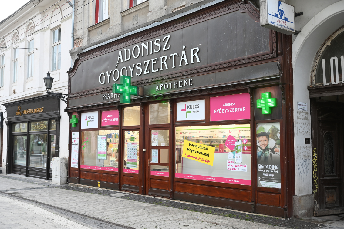 Új fejezet nyílt a Miskolc sétálóutcáján működő, nagy múltú Adonisz Gyógyszertár életében: immár kiemelt minősítésű Kulcs Quality Patikaként várja a vásárlókat. Megújult, tágas és barátságos térben, modern berendezéssel és kényelmes, szabad polcos kiszolgálással kínálja továbbra is azt a megszokott szakértelmet és gondoskodást, amelyet Miskolc és környéke lakói már jól ismernek.