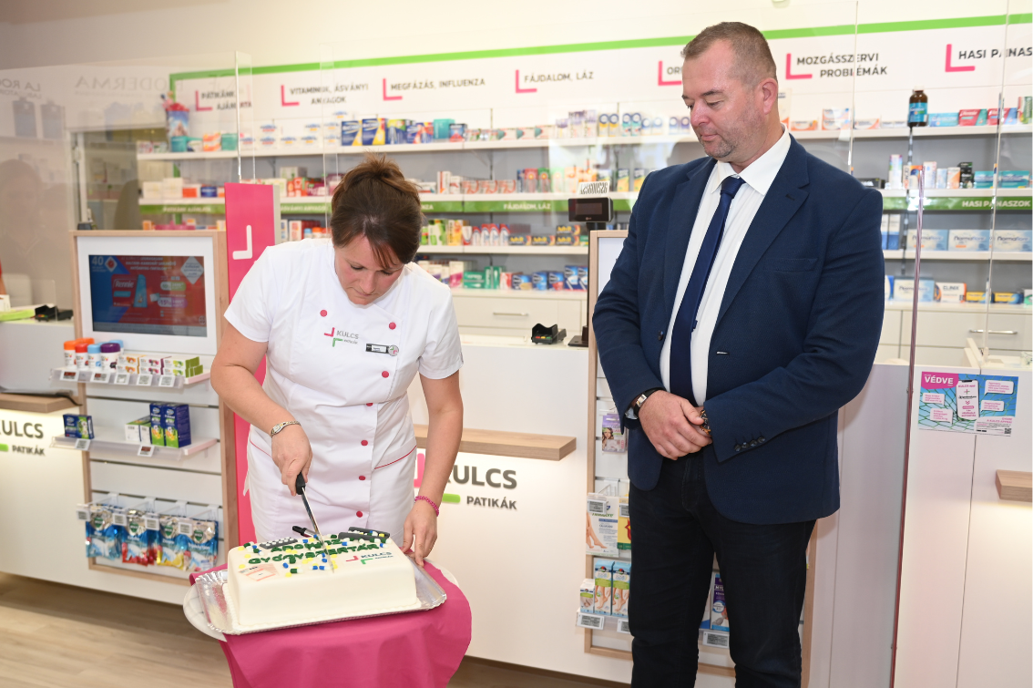 „Ez a nap számunkra egy nagyon izgalmas új fejezet kezdete. A cél az volt, hogy egy gyönyörű, korszerű és minden szempontból kényelmes környezetet teremtsünk, ahová jó bejönni, és ahol gyors, szakmai és segítő kiszolgálást kap a betérő” – sorolta a megújult gyógyszertár előnyeitDr. Feledy-Bacsik Ágnes.