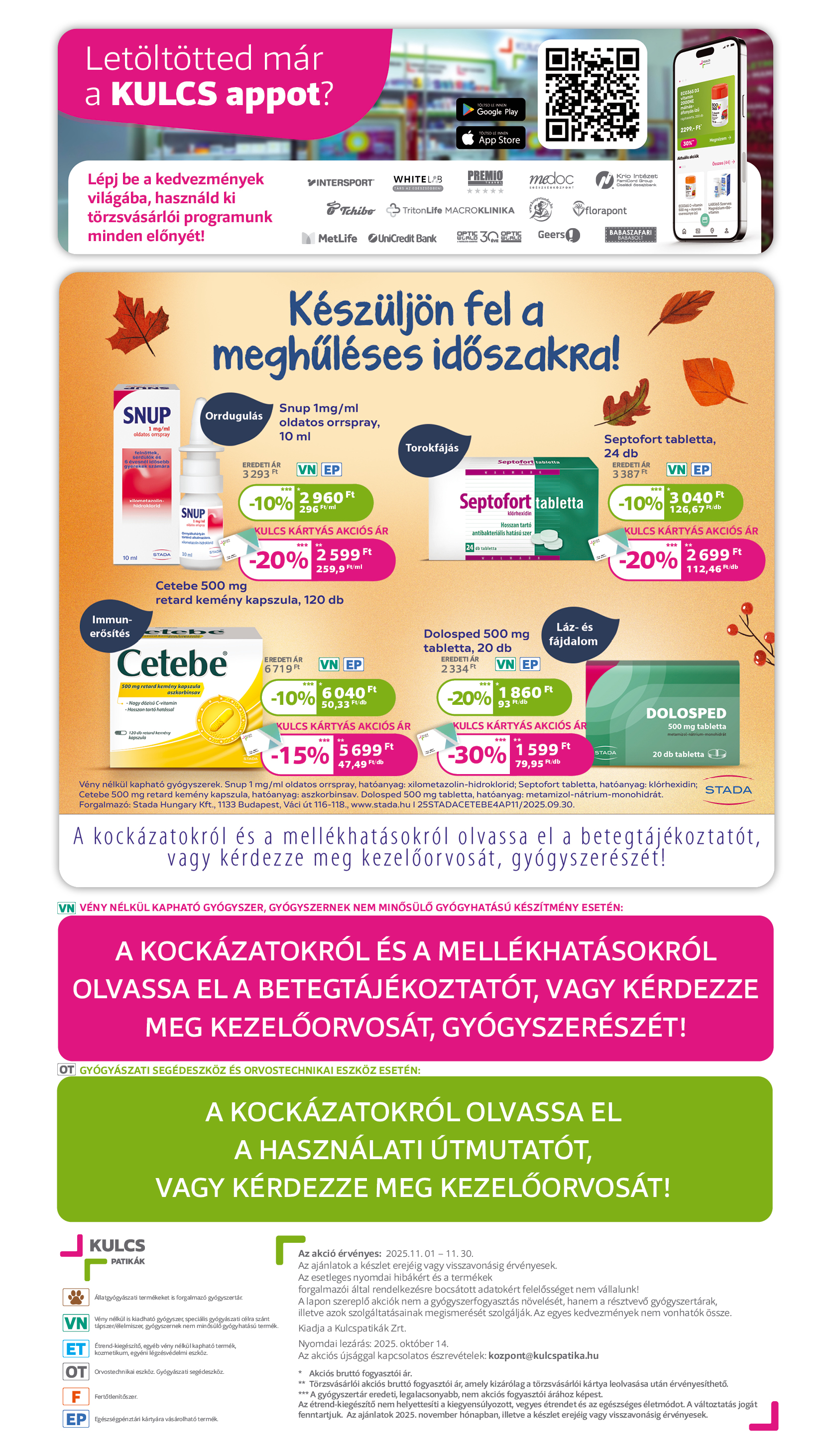 Ár- és készletinformáció iránt érdeklődj patikáink elérhetőségein.
