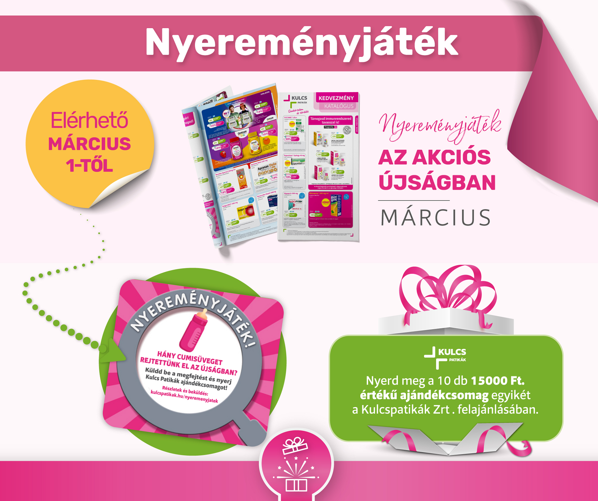 Nyereményük 1-1 db Kulcspatikák 10 000 Ft értékű ajándékcsomag.